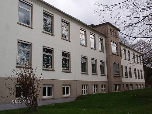Die Tage des 82 Jahre alten Gebäudes der Grundschule Mittelhaan - früher Gemeinschaftsschule Mittelhaan - an der Dieker Straße 69 sind gezählt: Ende April 2010 soll es abgerissen und durch einen Neubau ersetzt werden. Angesichts des bevorstehenden Ereignisses lud der Bergische Geschichtsverein Haan e.V. am 11. April 2010 zu einem letzten Rundgang durch die alten, bereits leergeräumten Räume ein. Überraschender Eindruck: Nicht nur die Mosaiken an der Außenwand und die bunten Wandmalereien im Flur scheinen in den letzten 45 Jahren unverändert geblieben zu sein.