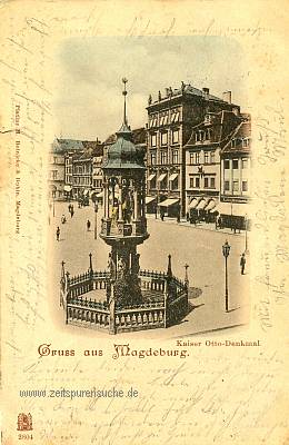 Gruss aus Magdeburg. Kaiser Otto-Denkmal (Gelaufen 1899) |