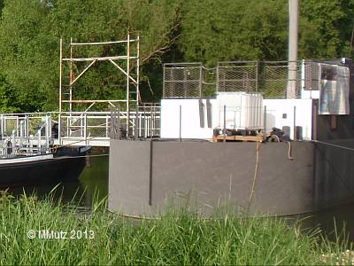 Der Aufbau des Pontons hat einen weißen Farbanstrich bekommen. |