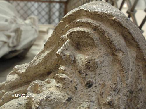 Juni 2012 Gesicht am Fußende. Evtl. das Selbstportrait des Bildhauers oder Steinmetzen? |