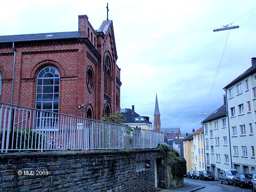 Die (äußere) Ähnlichkeit mit der Lutherkirche in Solingen-Höhscheid ist nicht zufällig, denn an beiden wirkte derselbe Architekt: Friedrich Adolf CORNEHLS. |